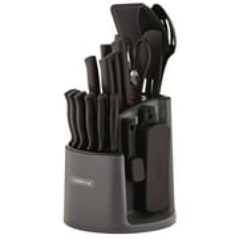 Farberware Classic 30-Piece Spin-N-Store Rotating Carousel Stainless Steel Knife Set & Tool Set Gray